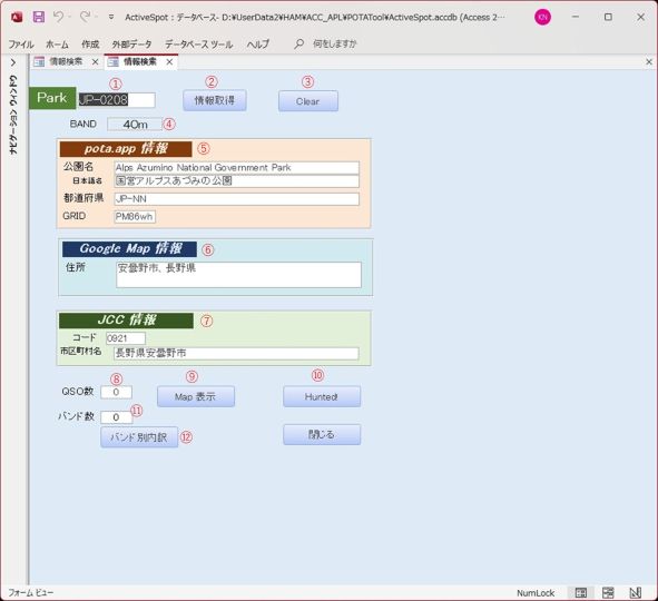 ⑤ | pota.app 情報 | POTA に登録されている公園情報 |