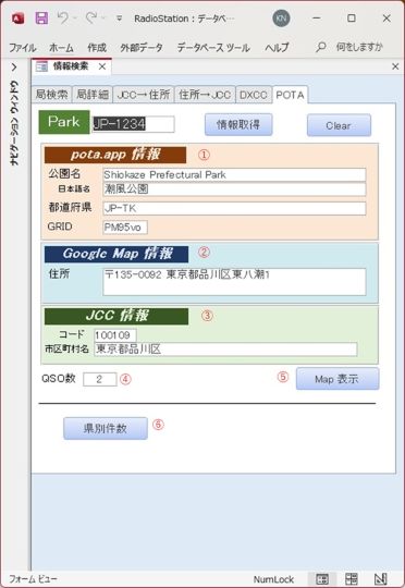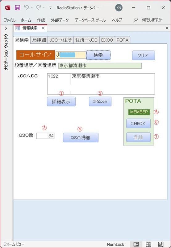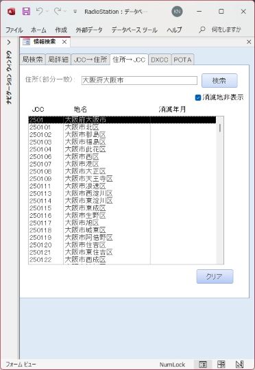 総務省提供の検索機能を使って局のっ設置場所・常置場所を表示