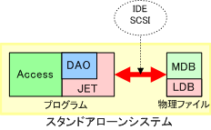 これらの背景もあり、Access と JET は同一 PC で稼動するようになっています。