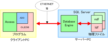 Access ADP から SQL Server を使用する場合の基本的なイメージは次のようになります。